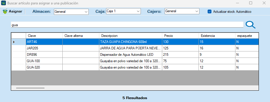 General: Se muestran todos los artículos relacionados al almacén.
