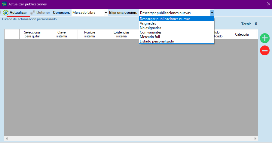 Asignadas: Realiza la actualización de la información de las publicaciones de Mercado Libre que están asignadas a un artículo del sistema ERP.