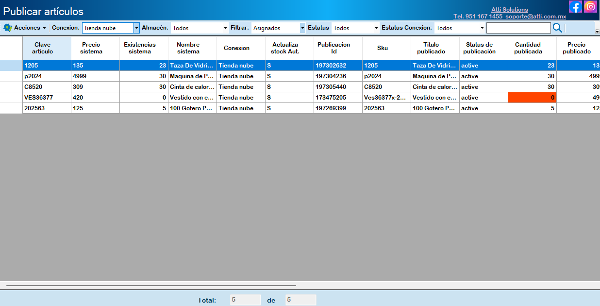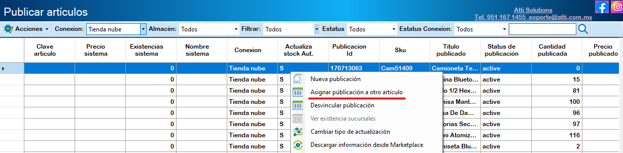 Asignados: Se muestran todos los artículos relacionados entre el sistema ERP y Tienda Nube.
