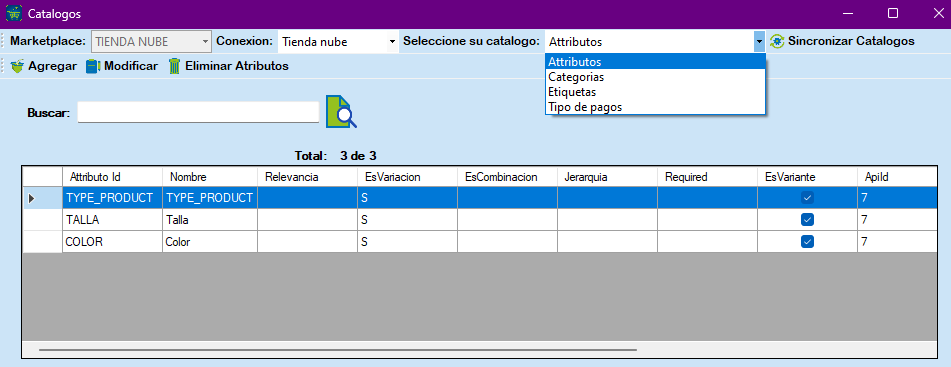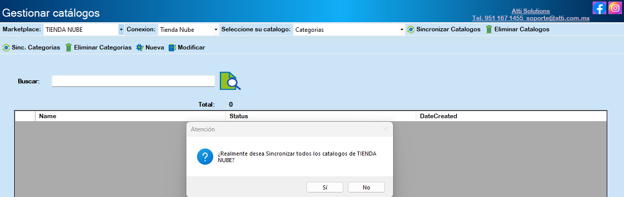 Al sincronizar catálogos, el sistema descargará las categorías, atributos y etiquetas. Una vez finalizado, se mostrará el mensaje “El proceso se ha realizado correctamente”.