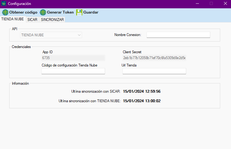 En la sección de Tienda Nube ingresa el Nombre Conexión que estará registrado en el sistema Microzync y en las credenciales el Código de Configuración Tienda Nube y Url Tienda.