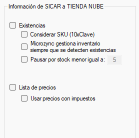 En la sección Información de Sistema ERP a Tienda Nube, marca las casillas que se sincronizarán del Sistema ERP a Tienda Nube.