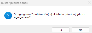 Una vez seleccionada la cantidad de artículos a publicar, en el siguiente mensaje, haga clic en «Sí» para continuar con el proceso.