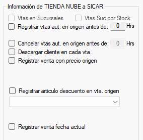 Ventas Suc por Stock: Las ventas se registran en las sucursales si los artículos vendidos fueron del stock de la sucursal. (Esta opción es solo para usuarios con sistema ERP SICAR)