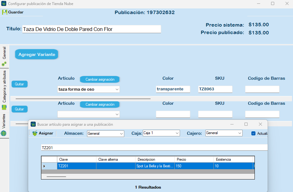 Lista de Precios: Se sincroniza el precio asignado de artículos del sistema ERP hacia Tienda Nube.