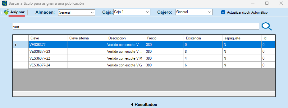 Todos: Se muestran todos los artículos existentes en sistema ERP.