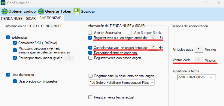 Sincronizar ventas cada: Es cada que tiempo se va a estar sincronizando las ventas.