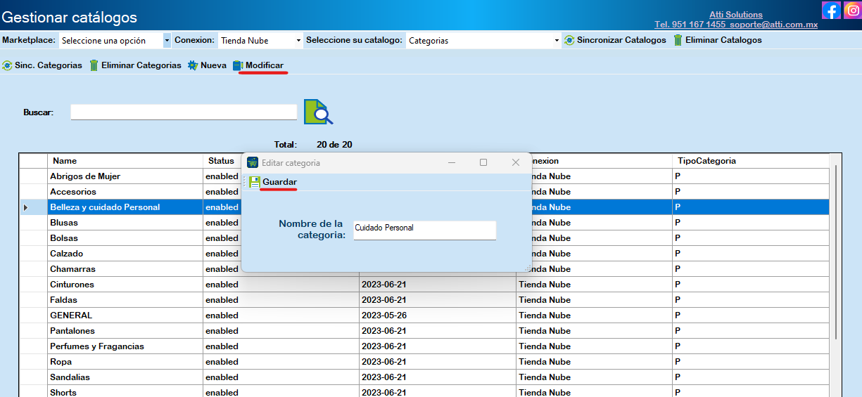 Para modificar una categoría, selecciona primero la categoría que será editar y para continuar haz clic en «Modificar».