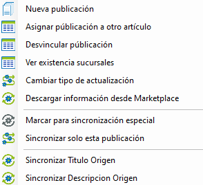 Para Publicar un articulo desde Microzync hacia Tienda Nueb haz clic derecho sobre el articulo y selecciona «Nueva Publicación».