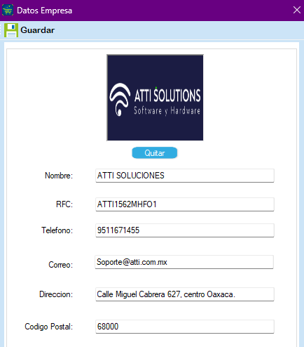 Haga clic en la opción de Datos Empresa e ingrese los datos que solicita tales como la Imagen o logo de la empresa, Nombre, RFC, Teléfono, Correo electrónico, Dirección y Código postal.