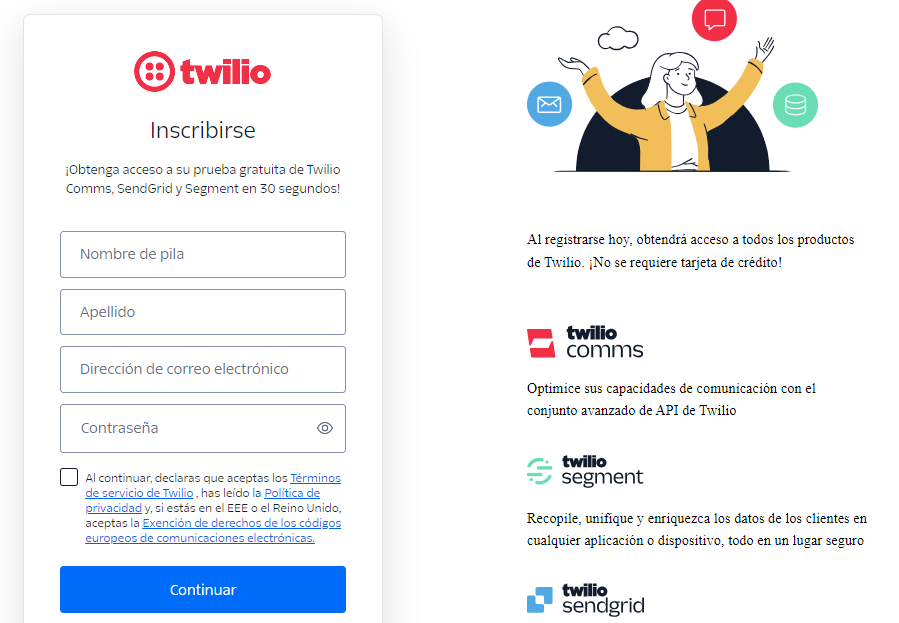 Paso2.- Ingresar en Twilio y crear una cuenta con la siguiente liga  https://login.twilio.com/u/signup