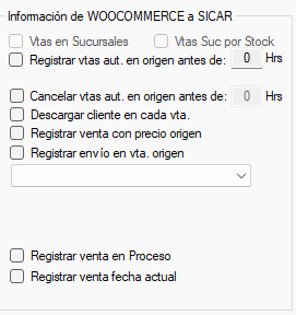 Registrar vtas. Aut. en origen antes de 0 Horas: Las ventas se registran sin hora de límite cuando se encuentra en 0, si el usuario asigna un número de horas para el registro de ventas, después del tiempo asignado las ventas son descartadas para registrarse en el sistema origen.