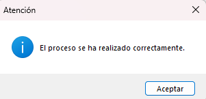 Si el proceso de configuración se realizó adecuadamente, le mostrará el mensaje “El proceso se ha realizado correctamente”, posteriormente haz clic en Aceptar.