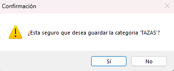 Se mostrará el nombre de la categoría a modificar, después de editar la categoría haz clic en Guardar. Haz clic en , para guardar la categoría.