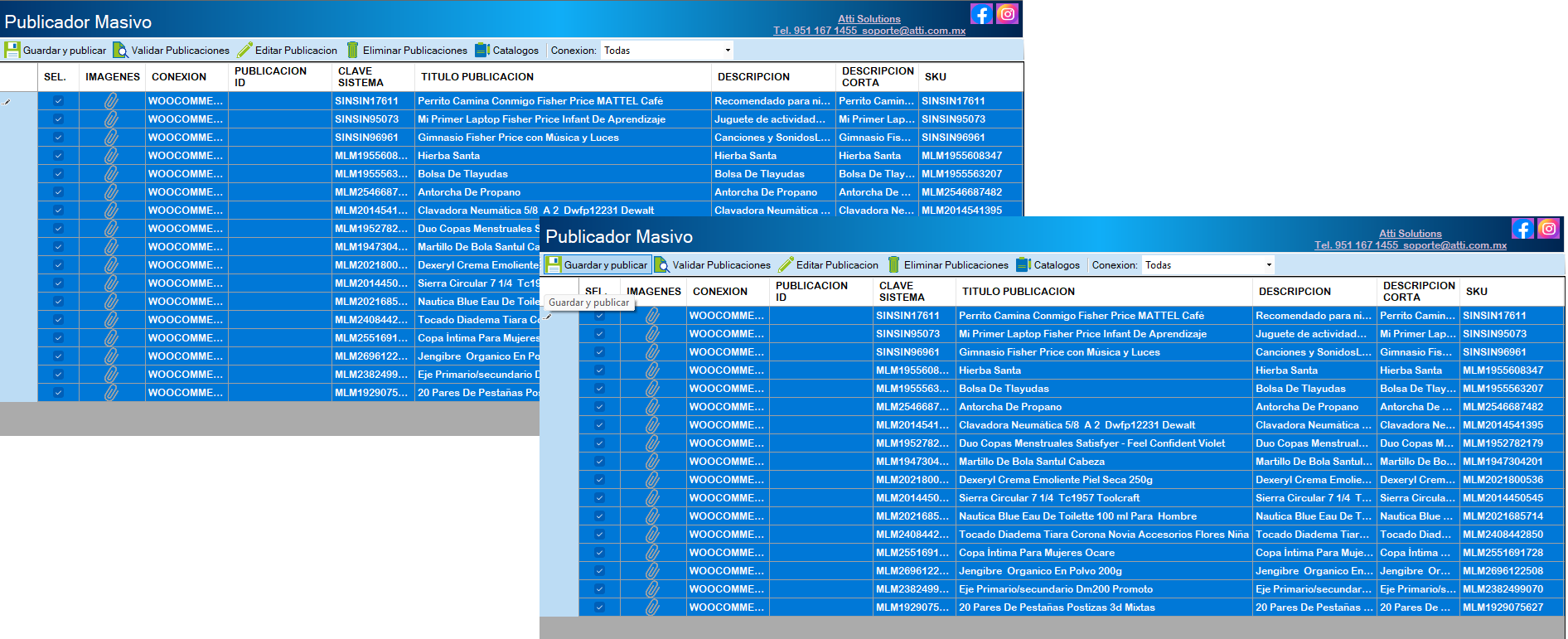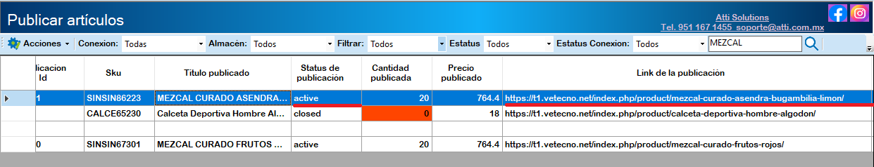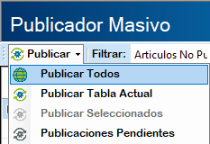 Publicar Seleccionados: Pública los artículos que se tienen marcadas las casillas en azul.