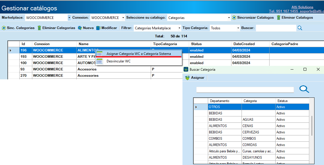 Relacionar Categoría WooCommerce con Categoría Sistema Origen  #