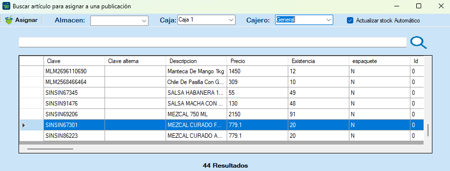 Todos: Se muestran todos los artículos existentes en sistema ERP.