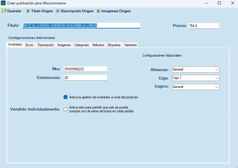 Sincronizar solo está publicación: Permite sincronizar del sistema origen a WooCommerce, los inventarios y ventas solo del artículo seleccionado.