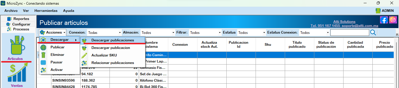 Iniciar Sync: Inicia la sincronización para actualizar existencias, precios y descarga las ventas del Marketplace conectado.