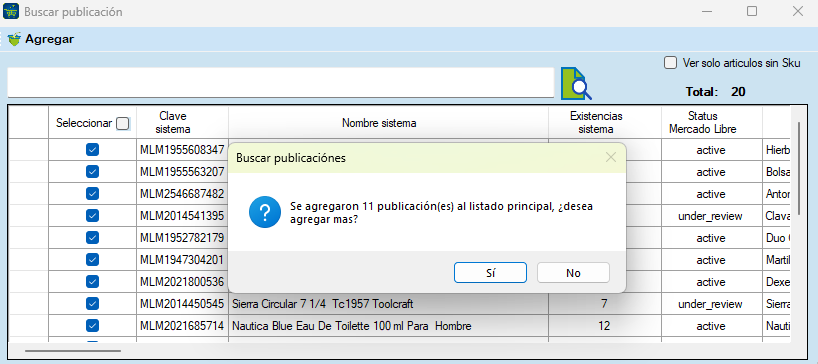 Buscar Articulo: Para Buscar un artículo escriba el Sku o ID de la publicación y haga clic en la Lupa.