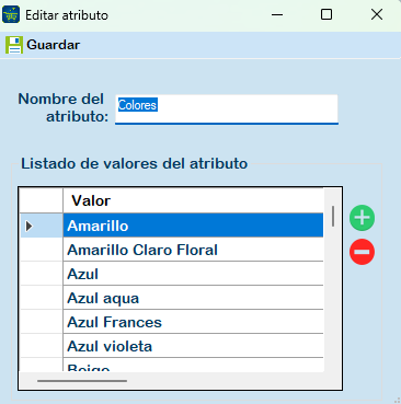 Atributos: Permite agregar uno o más atributos al artículo