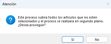 Publicar Todos: Publica todos los artículos hacia WooCommerce en segundo plano por lo que no afectara, para realizar otras actividades como descargar ventas, actualizar precios, imágenes o editar publicaciones. Al dar clic en Publicar todos en caso de que tenga más de una conexión le parecerá el siguiente recuadro para que seleccione a cual conexión se va subir los artículos o en caso de publicar a todas las conexiones que tenga, seguido le mostrara si desea proseguir, acepte que sí y el proceso iniciaría, al finalizar le mostrara el mensaje que los artículos fueron publicados de manera correcta en WooCommerce.