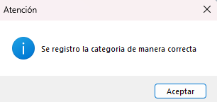 Al culminar se mostrará la categoría que ha modificado.