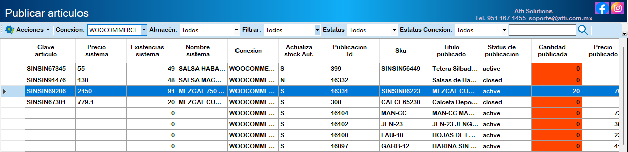 Todos: Se muestran todos los artículos existentes del sistema ERP y de WooCommerce.
