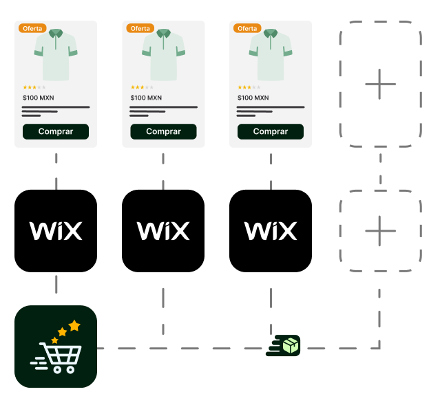 Conecta múltiples tiendas de Wix o crea conexiones con otros eCommerce.